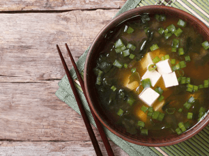 Sopa de miso Fuente de sabor, salud, longevidad y felicidad. La macrobiótica considera esta sopa milenaria con alga wakame como un auténtico elixir cargado de